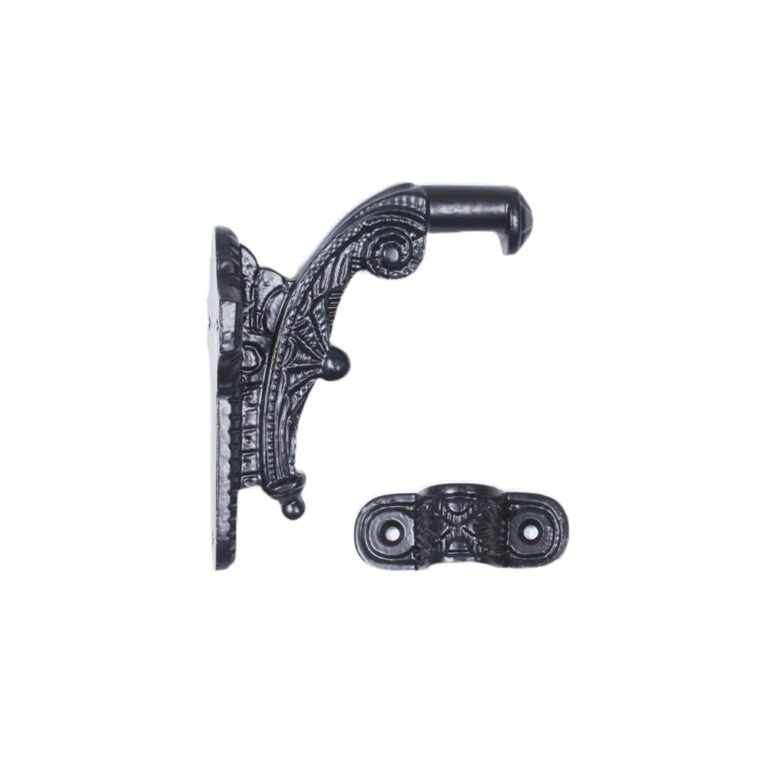An intricate detailed Black decorative Handrail Bracket will look great on your staircase. It will be functional and will visually add refinement to your staircase. This model comes also in a natural metal finish. Please check our collection of handrail brackets for your home. Screws are included and free shipping is available.