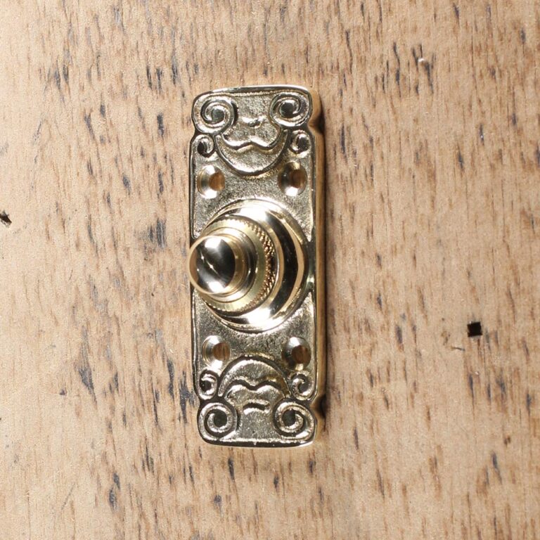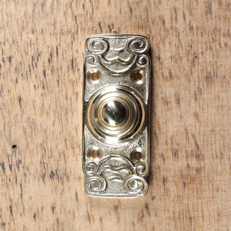 Cast brass push button doorbell. The shape is rectangular, and the style is classic. The design insert gives it an Art Deco look that will enhance and complete your entrance. Easy to install, just need to connect two wires. This doorbell is compatible with lower standard 12-voltage systems. Chimes is not included. This can be readily obtained from a local hardware store. Screws are included and free shipping is available.