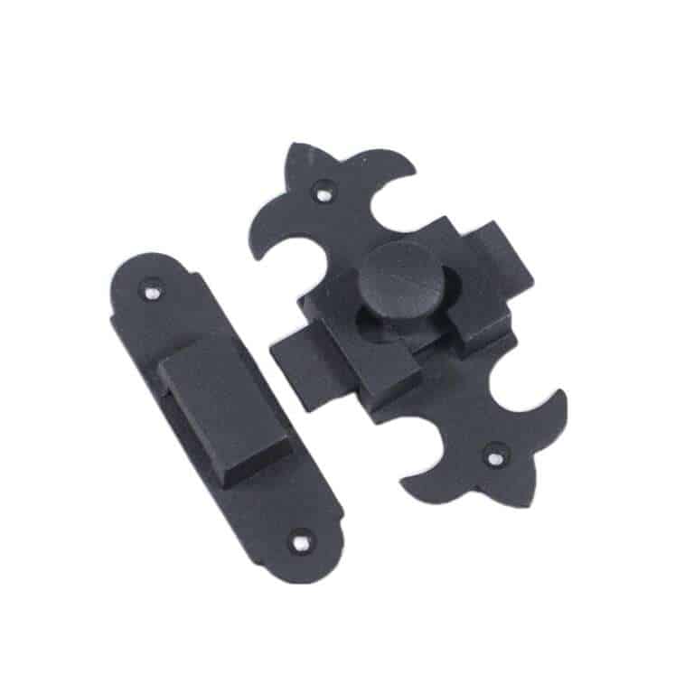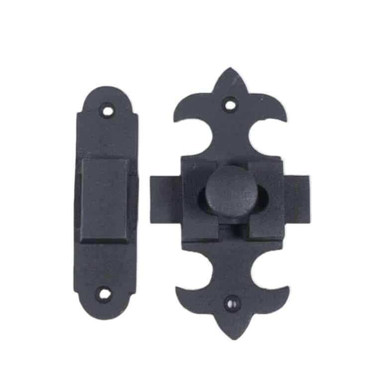 The antique-looking cast iron Fleur De Lys latch in black exudes an air of regal grandeur and historic charm. Reminiscent of a bygone era, this ornate latch adds a touch of sophistication and elegance to any door or gate it graces.