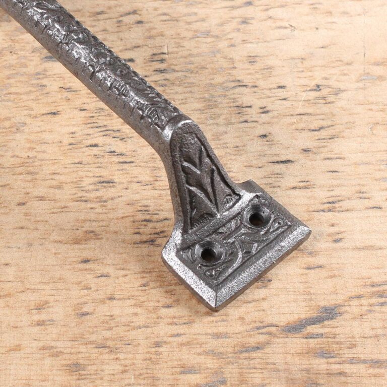 Classically intricate detailed strong reliable cast iron handle. This handle as a lacquered finish. Free shipping is available.