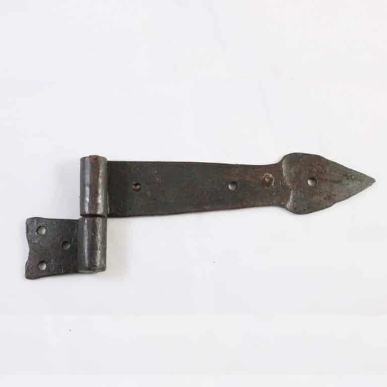 Forged strap arrow-styled hinge. This Hand Forged 5.25 inch left Side Hinge is a wonderful addition to a restoration project. Please check our beautiful collection of vintage restoration hardware and get the items that will give your work a lasting look. Free shipping is available.
