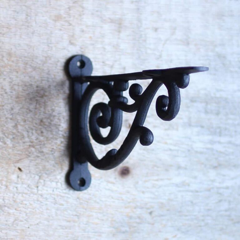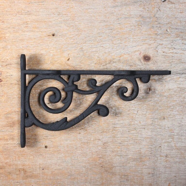 Cette petite équerre de fonte noire aux motifs virolés est parfaite pour le support de vos petites étagères dans votre maison. Cette équerre à tablette en fonte stylisé saura mettre une touche indémodable a votre demeure. Vous trouverez sa petite sœur ici