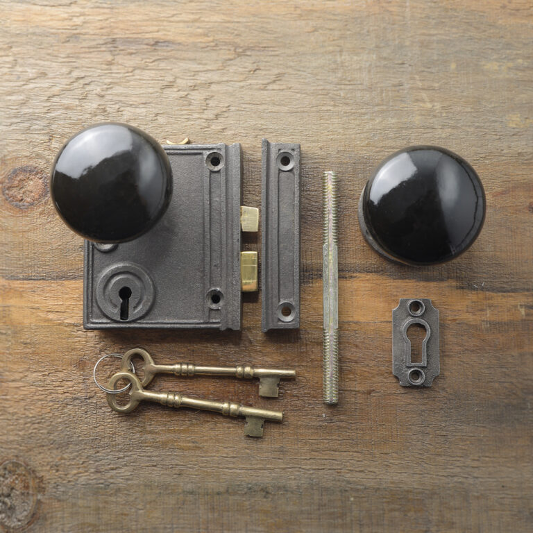 Serrure vertical en fonte avec poignée en porcelaine noire